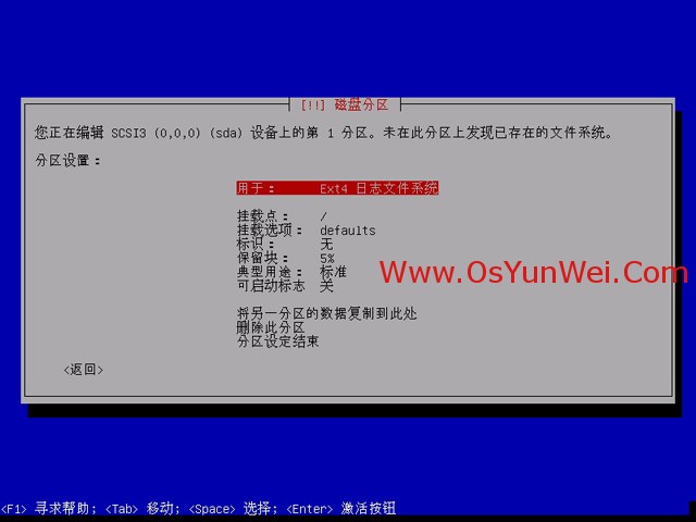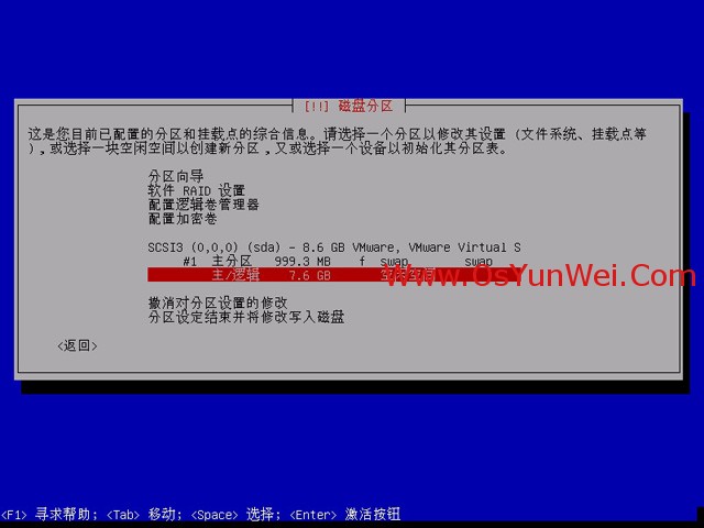 輸入分區大小:1GB 注意:交換空間的大小一般為物理內存的2倍