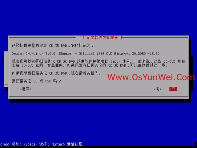 Debian7.0.0的安裝鏡像文件有3個DVD,安裝基本系統只用到第一個鏡像文件,即DVD1