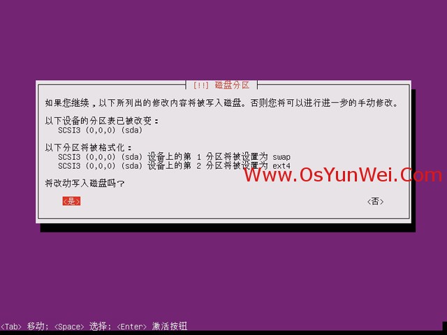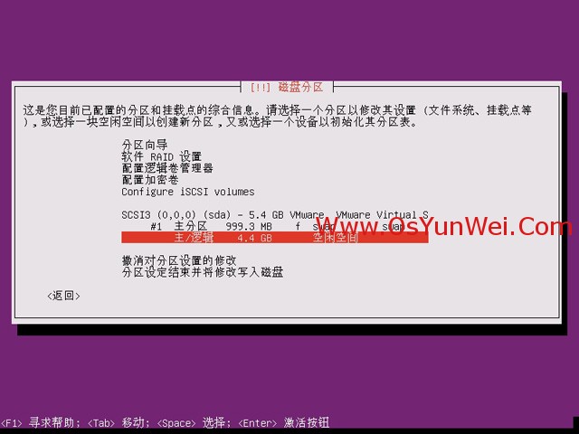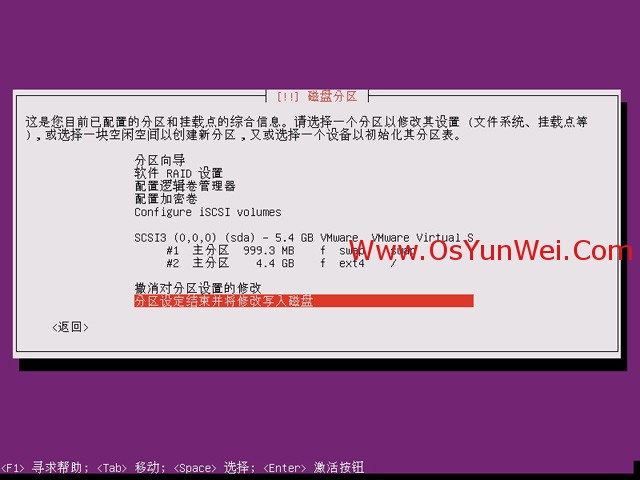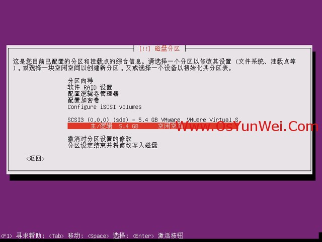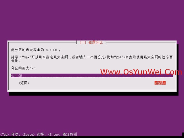 分區大小,這里默認顯示剩余空間(分區之前先要規劃好,我這里只分swap和跟分區"/"),