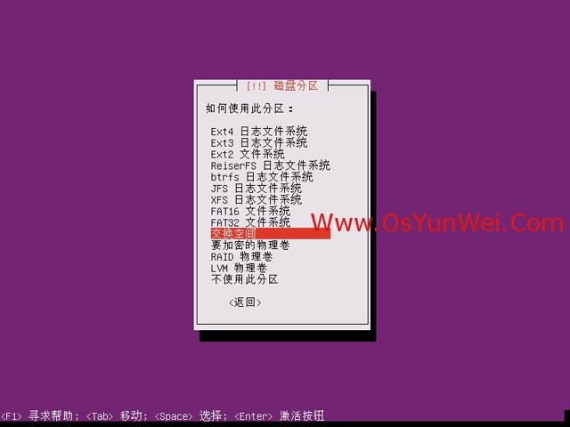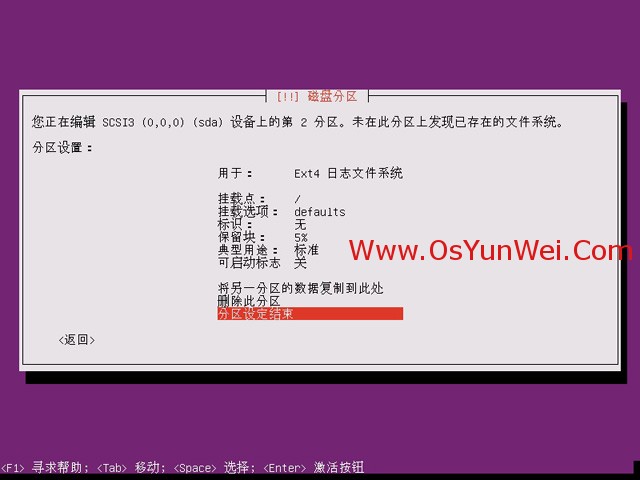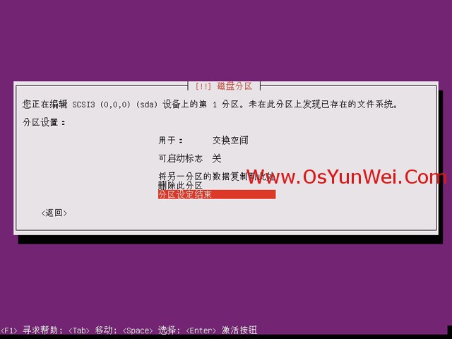 點分區設定結束,這樣就設置好了swap分區(一般為內存大小的2倍),繼續重復上面的步驟,在劃分一個根分區
