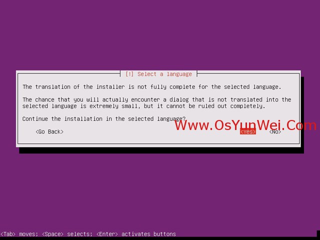 詢問是否繼續安裝所選擇的語言版本,選擇“yes”