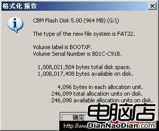 6、格式化U盤完畢后彈出下圖報告,點擊“確定”。