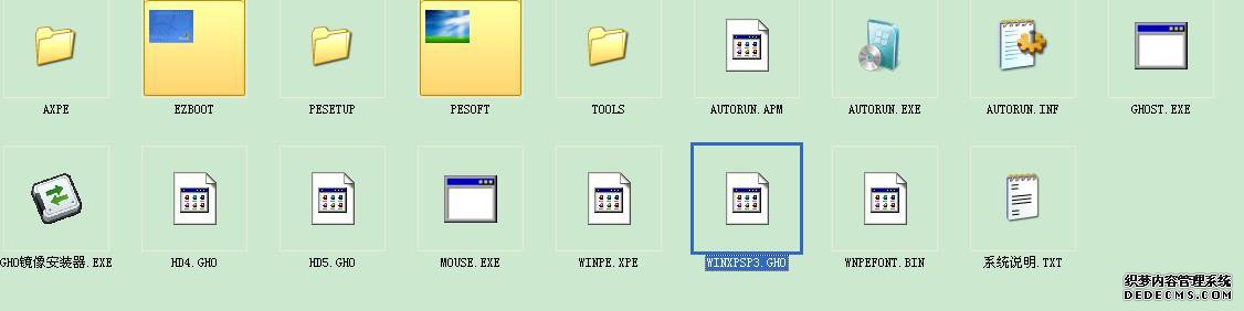 解壓后的目錄,將winxpsp3.gho 復制到U盤,這就是我們的系統進U盤里能還原的。一盤HD4.gho ,HD5.gho 是系統自身帶的PE文件,對我們沒用。有時不知哪個是系統文件,我們可以用搜索.gho后綴的文件,最大的一個肯定就是系統了。做完這些后,我們重啟電腦,設U盤啟動。