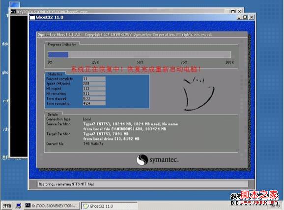 最后等待恢復完成,重啟電腦,拔出U盤從硬盤啟動就行了。