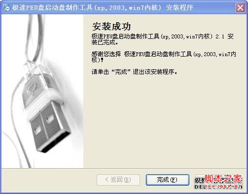 安裝完成,點擊完成按扭。點擊完成后會自動運行極速PEu盤啟動盤制作工具,效果如下。