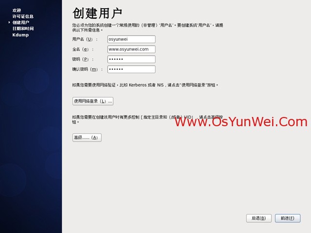 注意:這里可以根據(jù)提示創(chuàng)建一個(gè)普通的用戶,也可以直接點(diǎn)前進(jìn),不創(chuàng)建