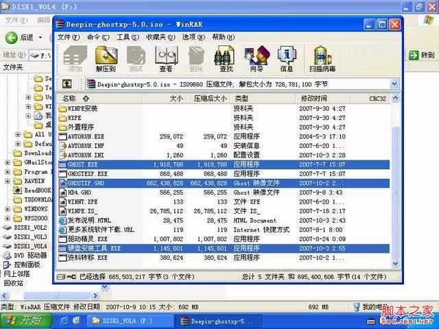 雙擊用WINRAR打開(kāi),按住Ctrl鍵,用鼠標(biāo)點(diǎn)擊選擇GHOST.EXE,GHOSTXP.GHO和硬盤安裝工具.EXE,如圖所示:(說(shuō)明:不同版本硬盤安裝工具可能不同,可以先查看說(shuō)明文件)