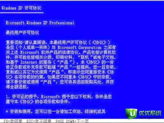 提示安裝按回車鍵,退出按F3,當按回車后出現(xiàn)如下界面,許可協(xié)議,這里沒有選擇的余地,
