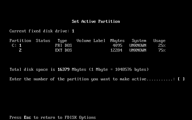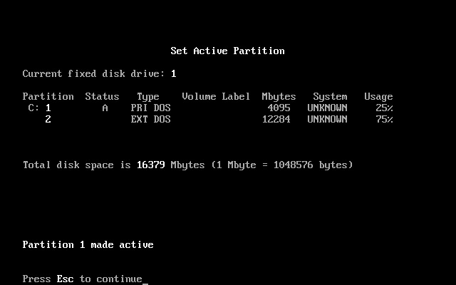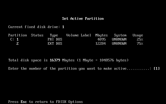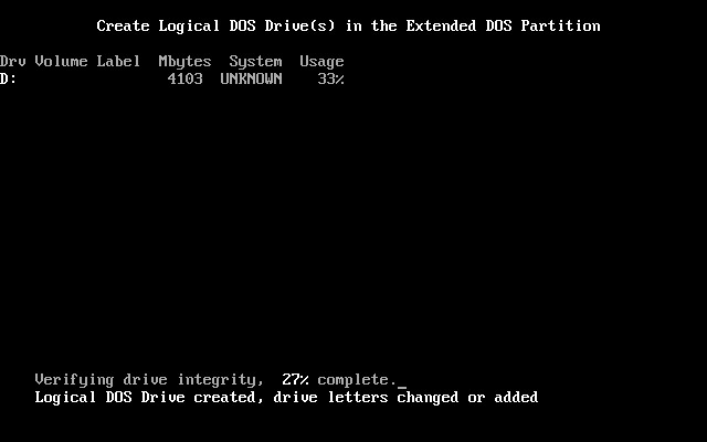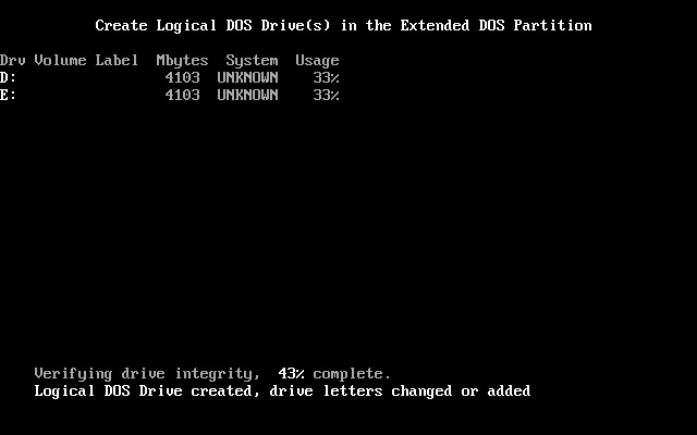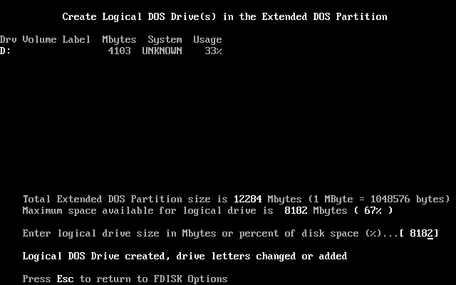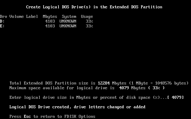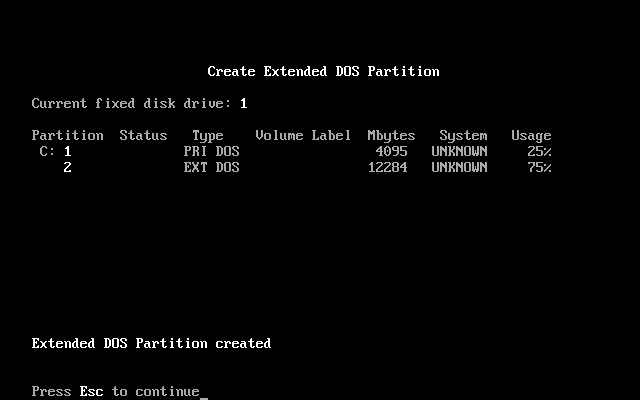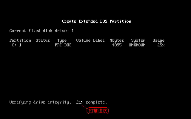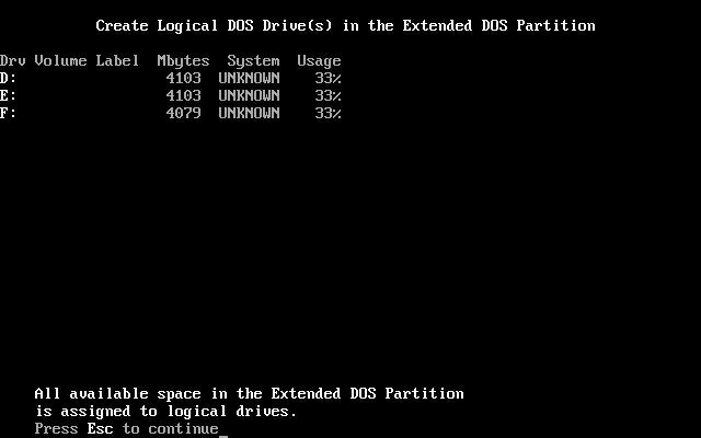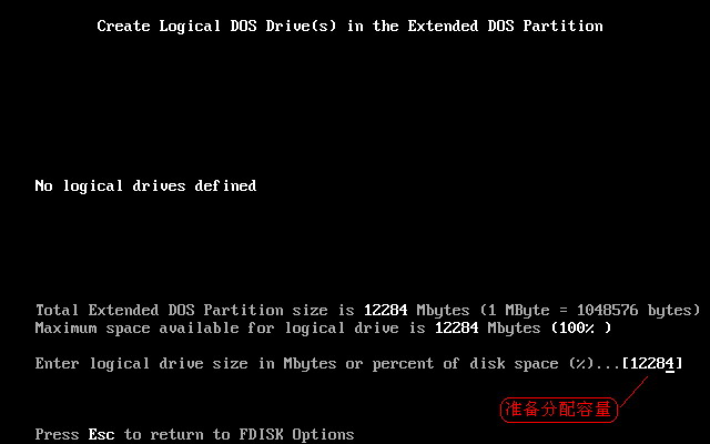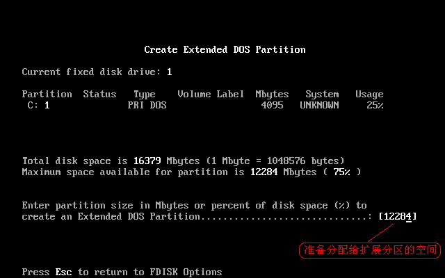 上圖中顯示出主分區和擴展分區參數。按Esc鍵后,出現如下圖18所示。