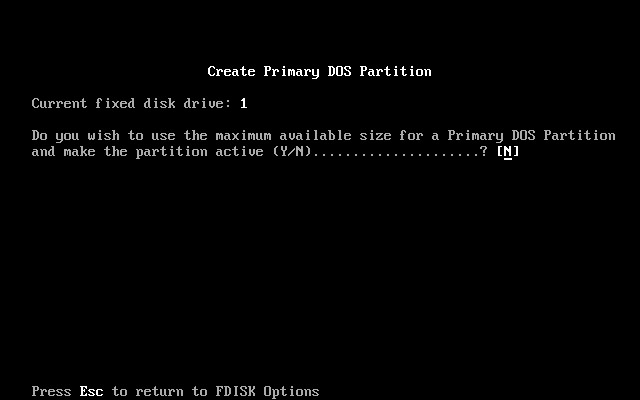 上圖中問是否將全部空間分配給主分區。現在的硬盤不會只建一個分區的,因此這里輸入“N”如下圖7所示。