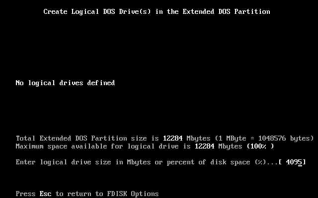 輸入第二個邏輯分區容量“4095”,如下圖23所示。