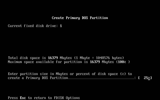 這里要輸入準備分配給主分區的容量,可輸入大小***MB,也可用%輸入。我準備平均分配硬盤容量為4個分區。因此在這里我輸入“25%”,如下圖10所示。