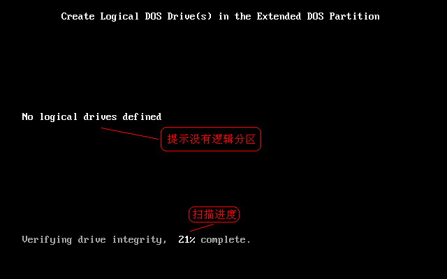 提示沒有邏輯分區,并掃描擴展分區容量。完成后出現如下圖19所示。