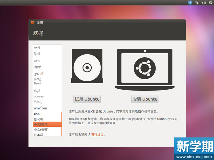 左側(cè)選擇“簡(jiǎn)體中文”,然后點(diǎn)擊右側(cè)“安裝Ubuntu”。