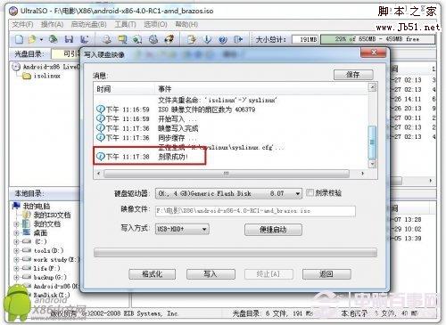刻錄成功,此時AndroidX86的系統鏡像已經以Live CD的形式燒錄到了U盤里。