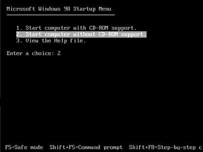 第二項“2. Start computer without CD-ROM support”(加載光驅驅動程序進入DOS)