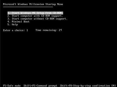 將光驅為第一啟動盤后,把Windows Me安裝光盤放入光驅中,重新啟動電腦至出現如下圖12