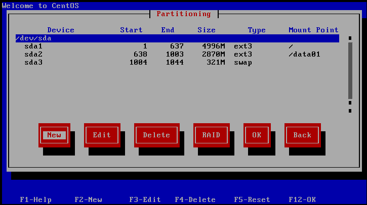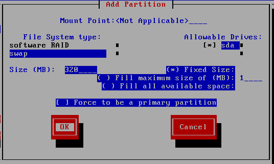 分區我采用最簡單的辦法,分一個swap分區,320m,根分區5g,創建一個data的分區,占用全部剩下的空間,其實你也可以是根分區是占用全部空間。
