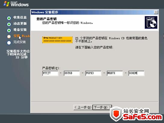 輸入產(chǎn)品密鑰(下圖只是一個(gè)示例,請輸入正確的密鑰)