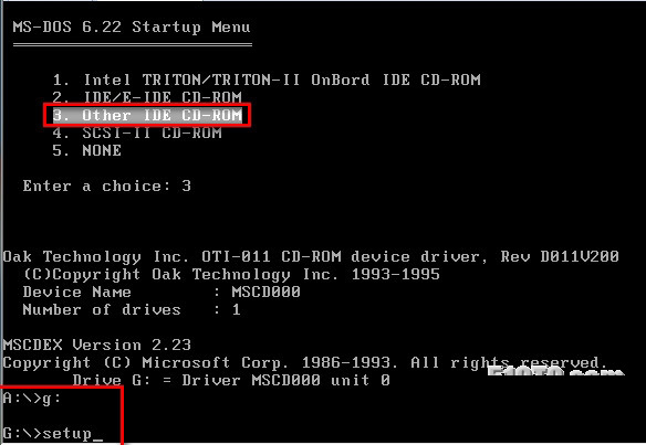 (1)重啟,在光盤根目錄下運行setup安裝DOS6.22,按照一下步驟就可以完成安裝。