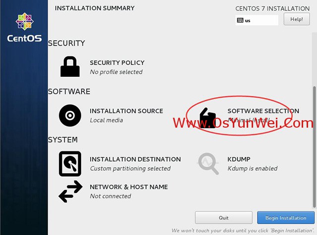 “軟件SOFTWARE”-“軟件選擇SOFTWARE SELECTION”,我們使用的是Minimal版本,默認是最小化安裝。