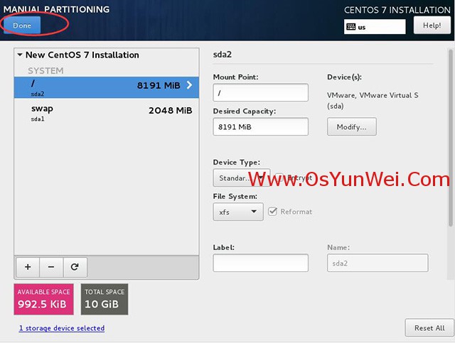 選擇-系統(tǒng)SYSTEM-安裝位置INSTALLTION DESTINATION,進入磁盤分區(qū)界面