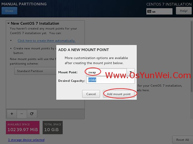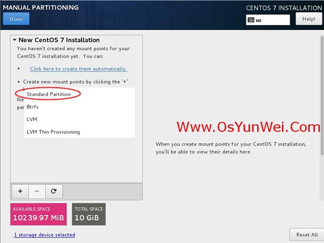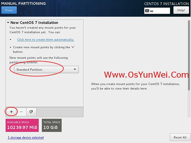 新掛載點使用以下分區(qū)方案:標準Standard Partition
