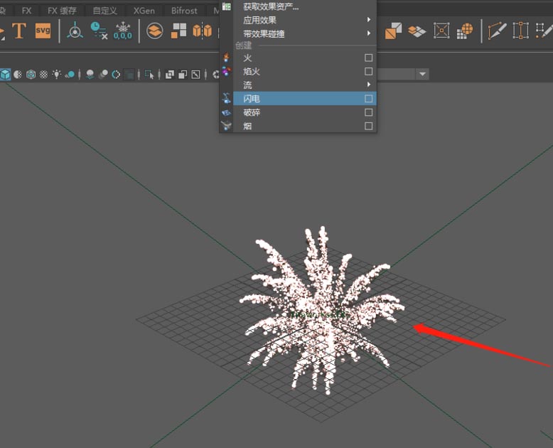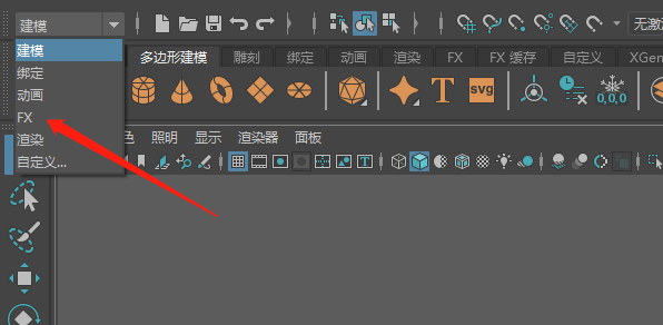 2、這時(shí)點(diǎn)擊FX選項(xiàng),這是maya中特效選項(xiàng)。