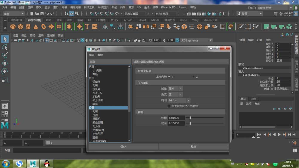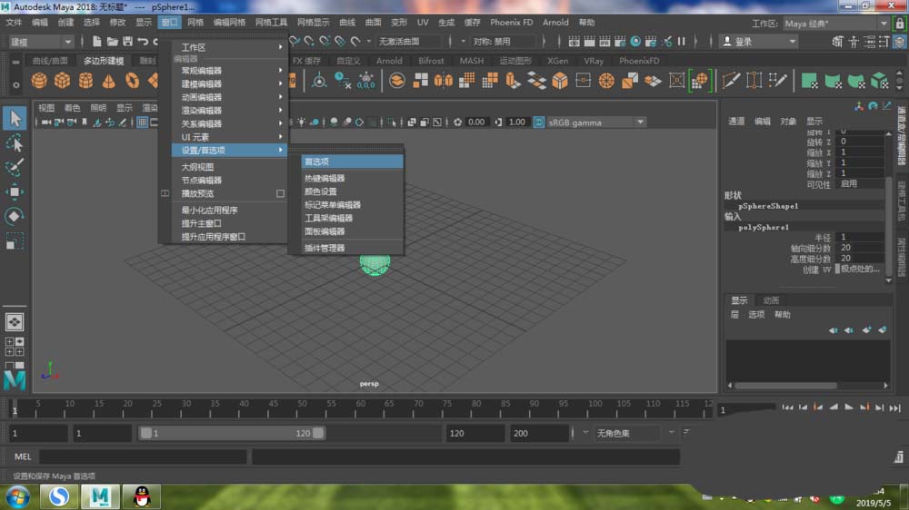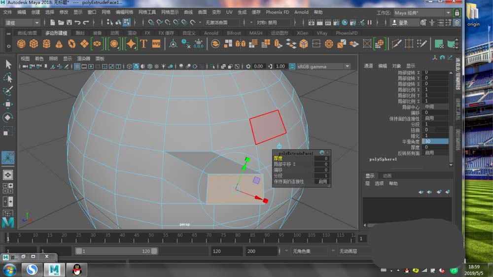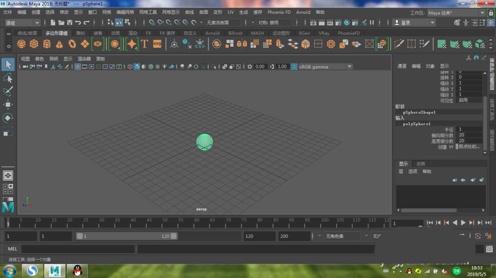 3、右側(cè)的通道盒是球體的一些屬性,可以實(shí)時(shí)改變這些屬性