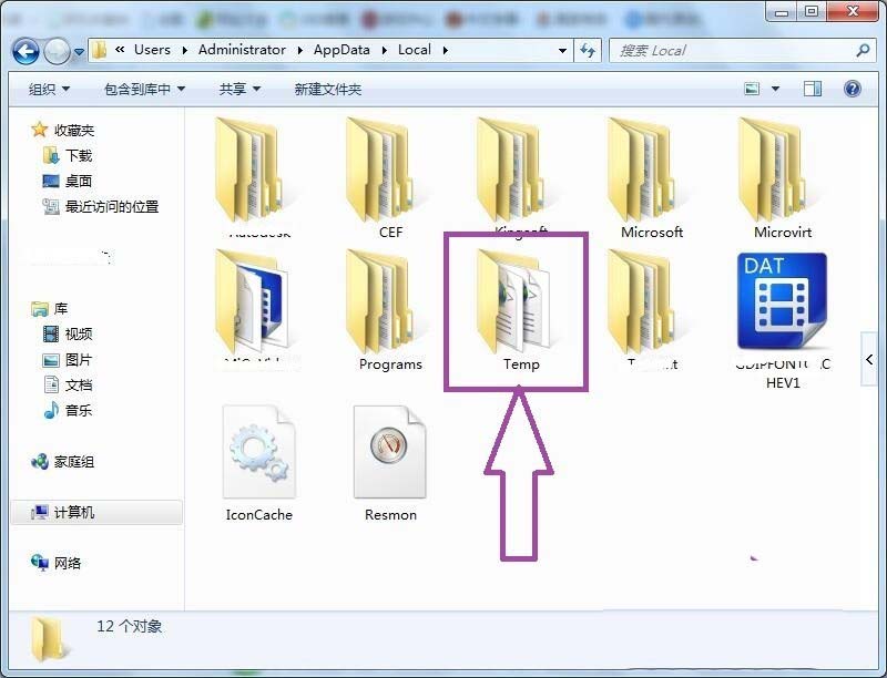 5、雙擊進入到“Local文件夾”內,在文件夾中找到“Temp文件夾”。