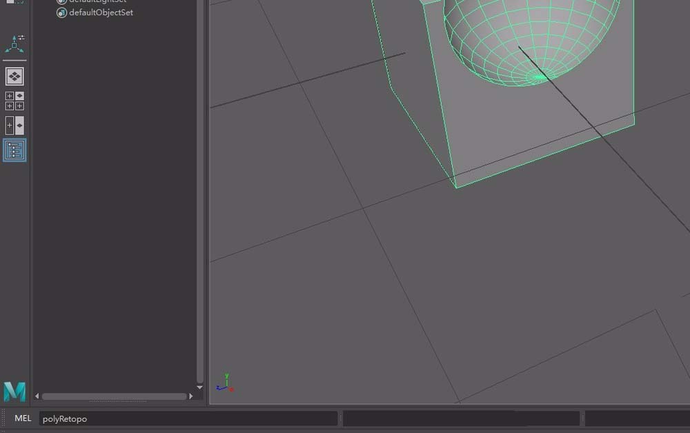 5、然后在Maya左下方的命令欄上面輸入代碼polyRetopo,這里注意小寫和大寫問題,小寫要小寫,大寫要大寫