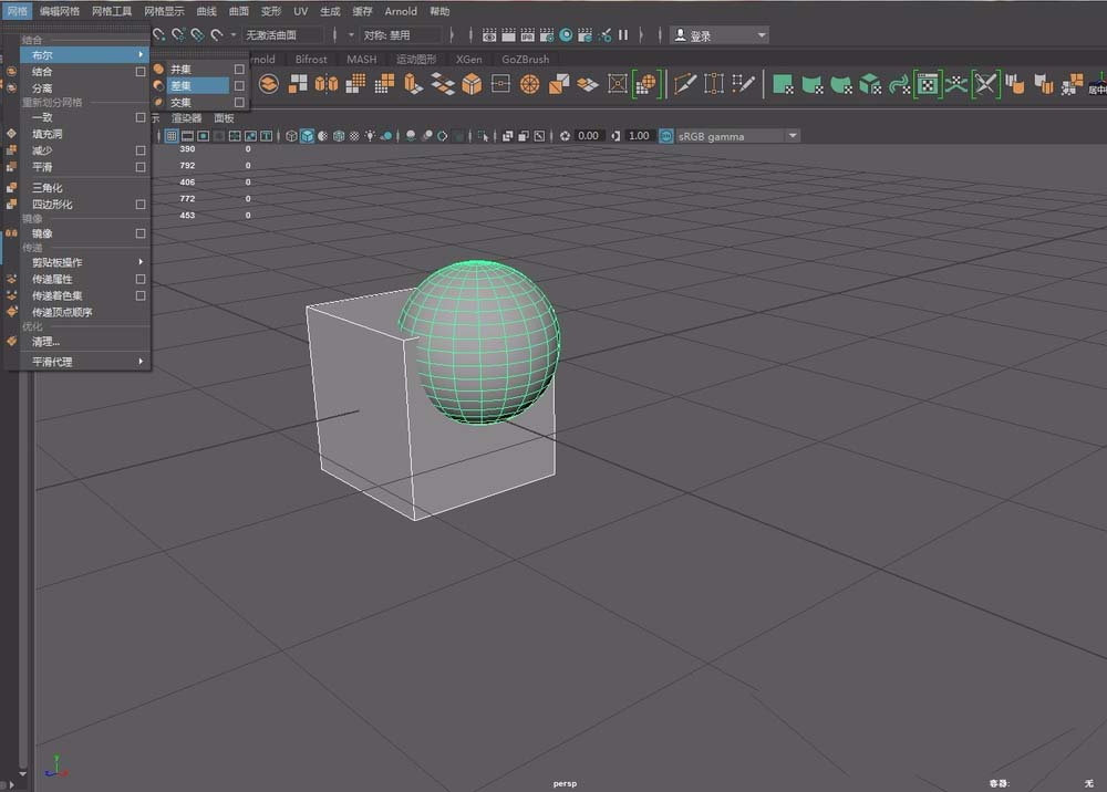 4、使用Maya布爾功能差集得到一個網格混亂的物體