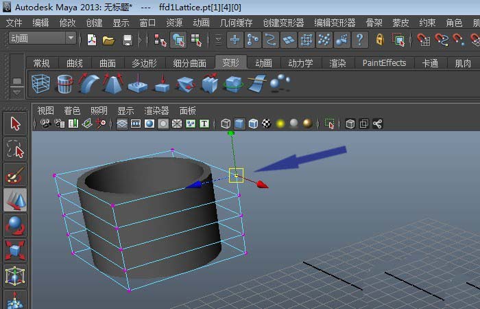 7、最后,通過移動晶格上的頂點,使圓環體模型發生變形,如下圖所示。通過這樣的操作,就創建好模型上的晶格了,大家也來做做吧。
