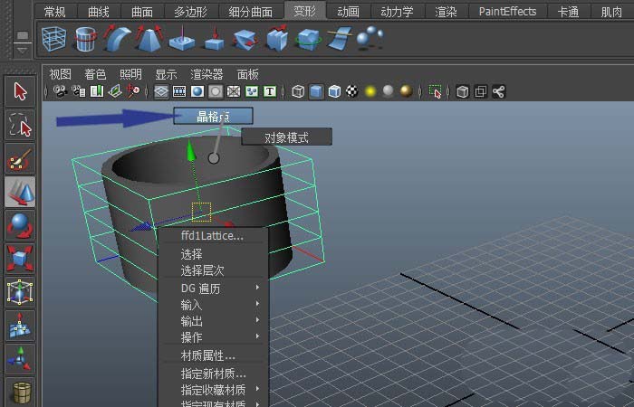 3、然后,鼠標左鍵單擊【工具欄】中的【變形】按鈕,并選擇【創建晶格】按鈕,如下圖所示。