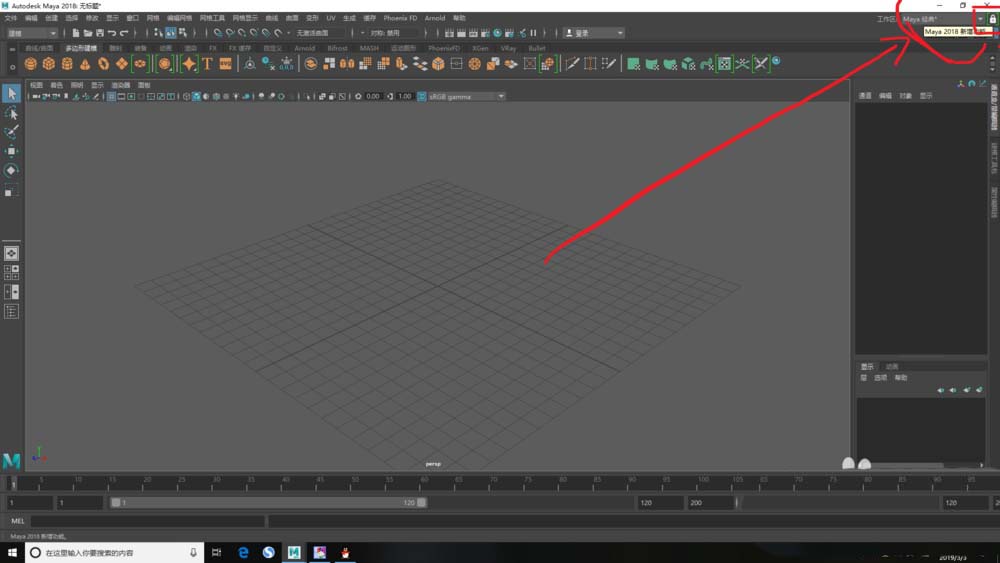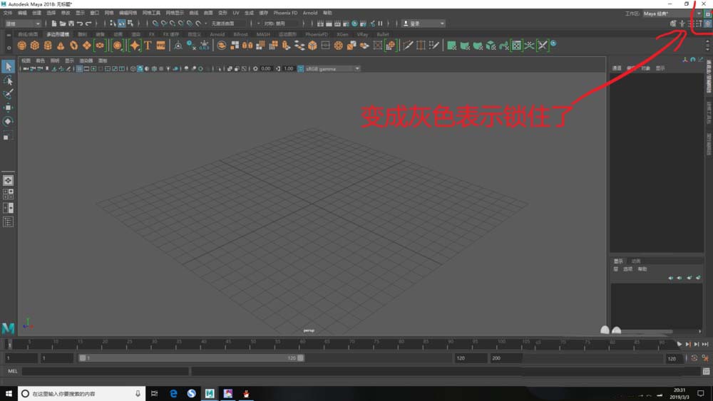 6、點擊右上角有一個maya2018新增功能的鎖形狀的鍵
