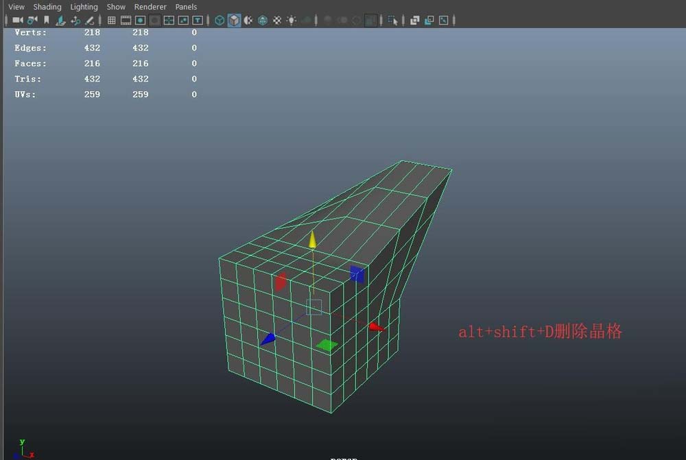 8、在模型狀態下,選中模型按alt+shift+D刪除晶格變形器