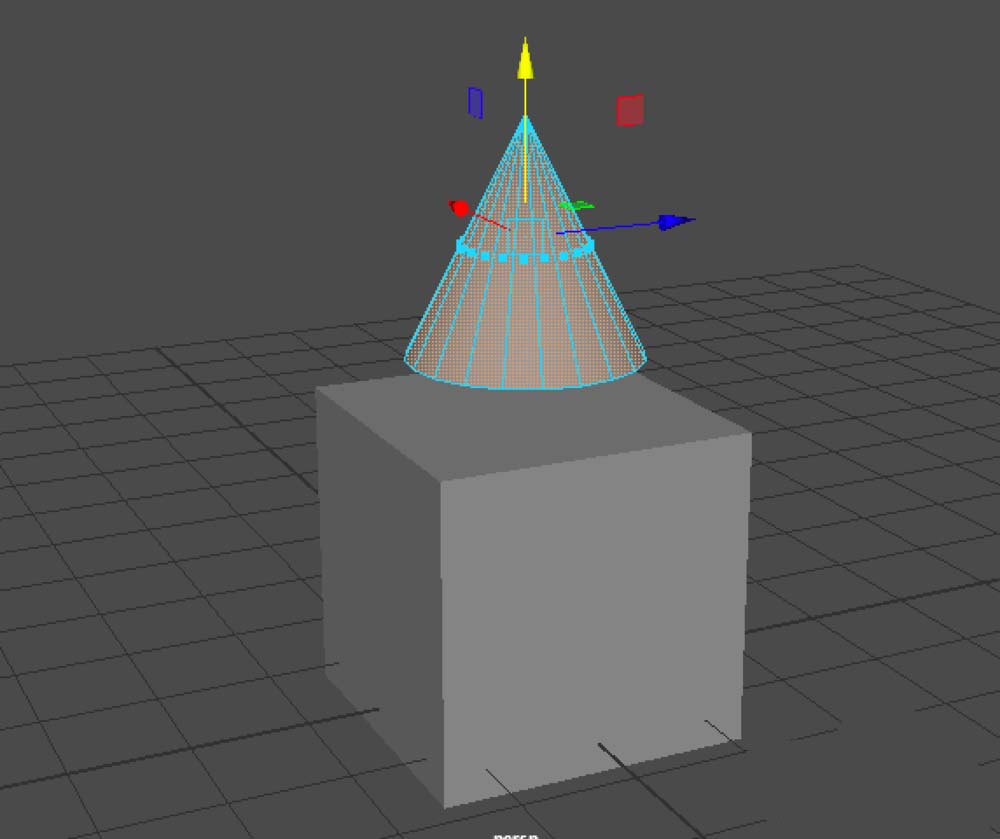 1、在多邊形【Polygon】模塊創建“立方體”【Cube】和“圓錐”【Cone】,在圓錐上右鍵選擇“面”【Face】的編輯模式,刪除所有側面,只留下底面的圓形。