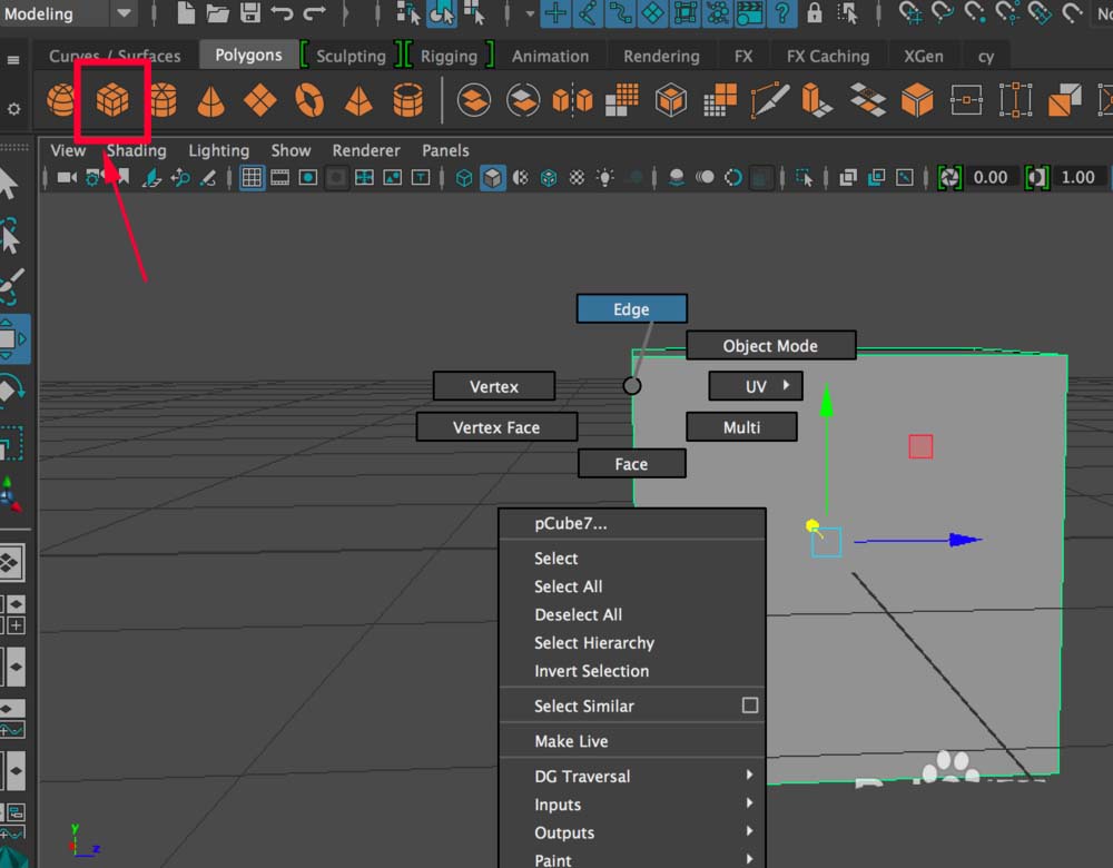 1、在“多邊形”【Polygon】模塊下創建一個立方體【Cube】,在模型上右鍵選擇“邊”【Edge】