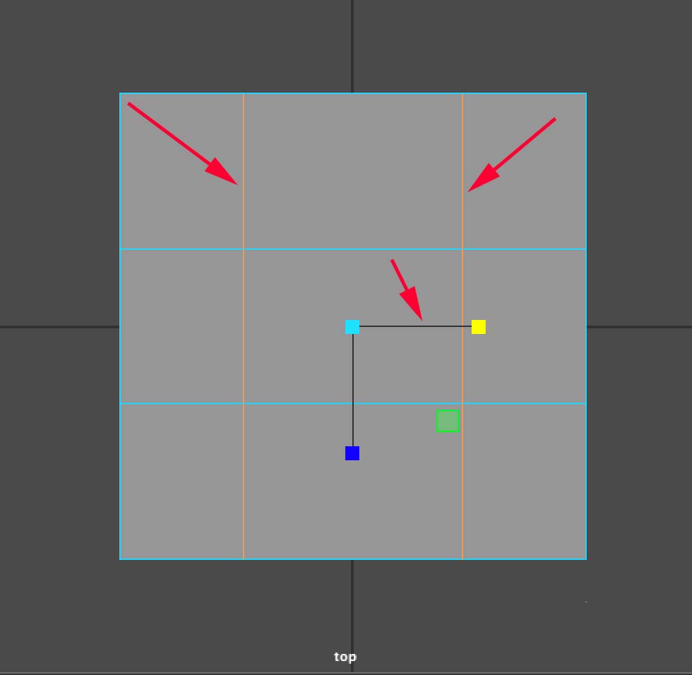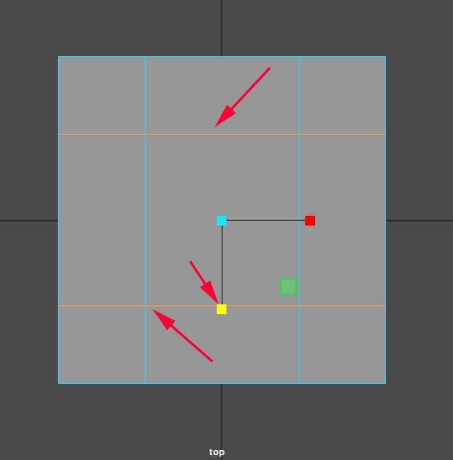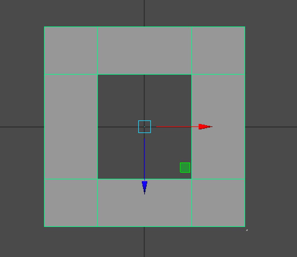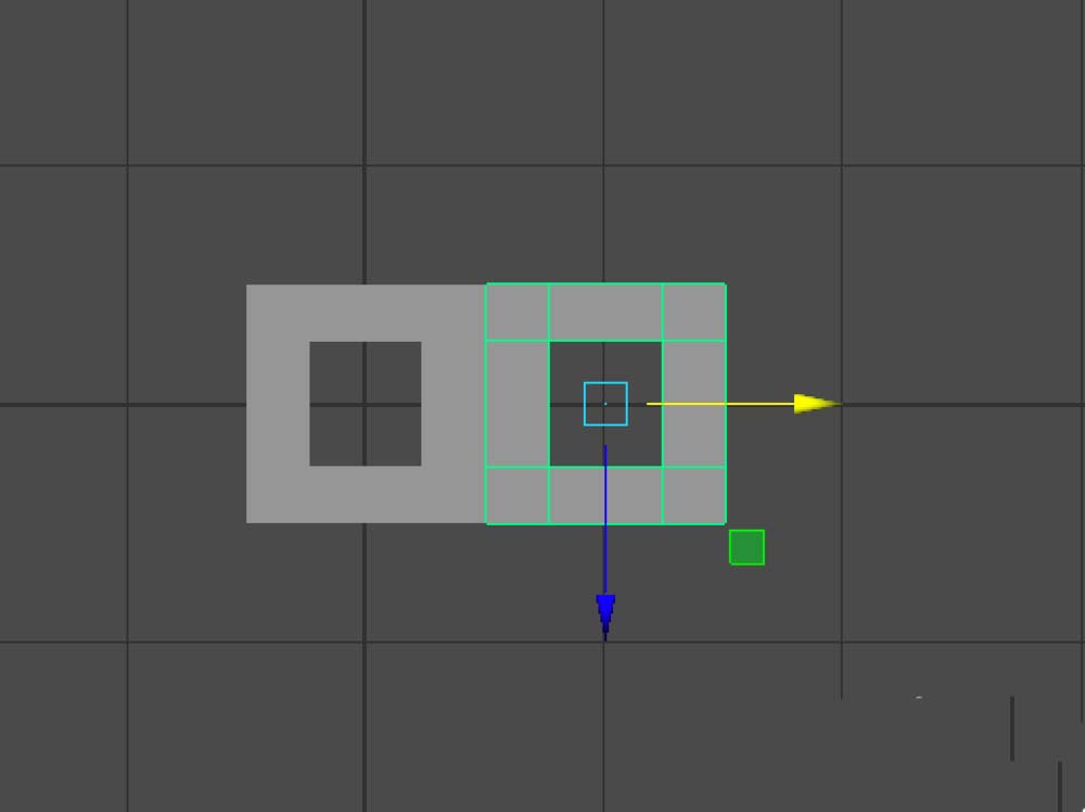 2、在頂視圖選擇邊線元素,選擇兩條豎線,通過縮放工具【R】向外移動一定距離,再選擇兩條橫線,向外移動一定距離,使平面面片中間出現一個正方形。