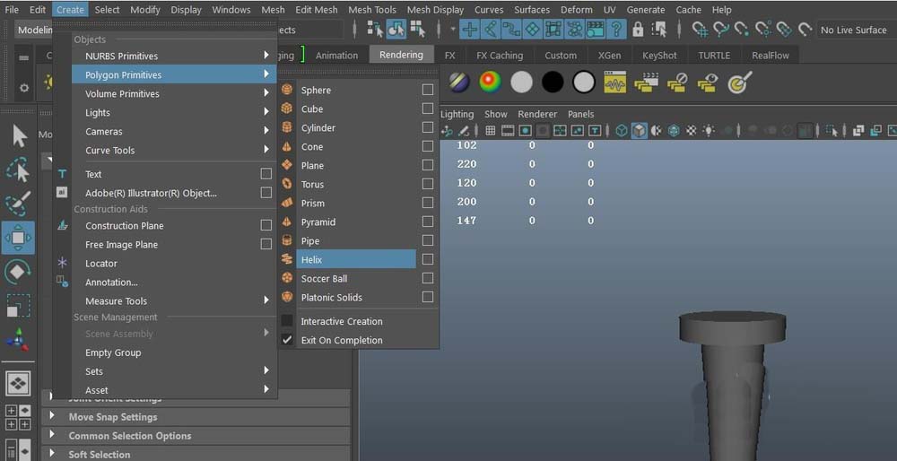3、創建helix模型,即螺絲釘循環部分,create---polygon----helix