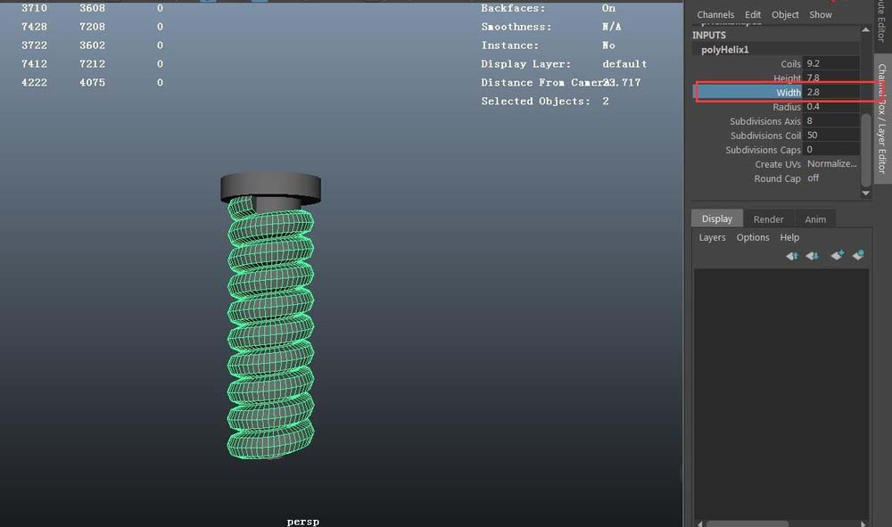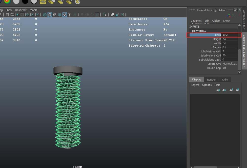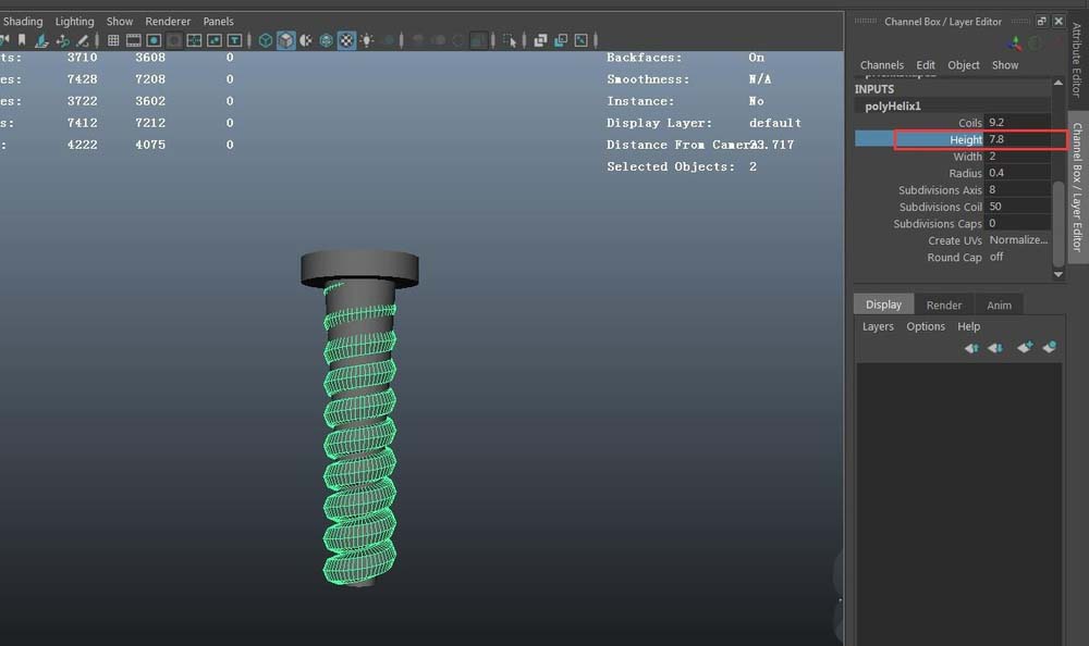 4、選中創建的helix物體,調節模型高度