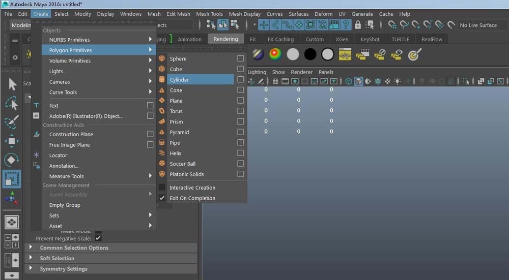 1、打開Maya軟件;新建一個圓柱體:create---polygon---》cylinder