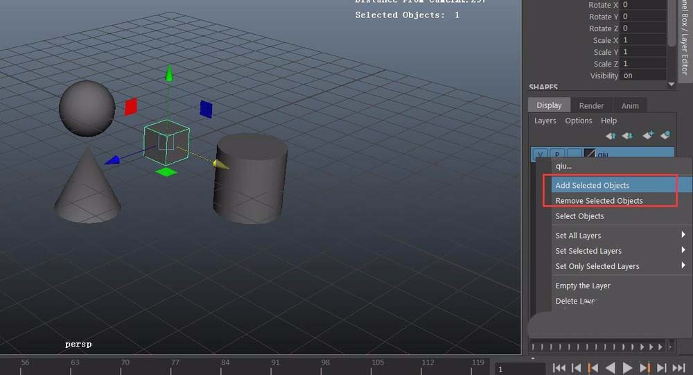 6、如果要將物體添加到層,選中物體在層上右鍵,進行添加或者移除
