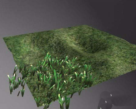 10、在Attribute Editor里還有一些其他的重要選項(xiàng)適用。“Seed”選項(xiàng)可以控制創(chuàng)建地形上草地的格式和位置。“Display quality”可以減少顯示在視圖中的草葉邊的數(shù)量,但是不會(huì)影響實(shí)際的密度。可以節(jié)約上傳到電腦的時(shí)間。下圖是地形密度設(shè)置為3.2的效果圖。