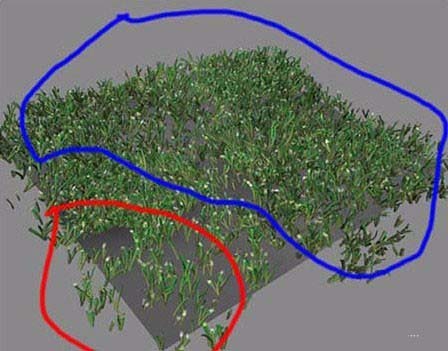 4、當(dāng)然我們有渲染設(shè)置的Paint Effects面板。這是一個(gè)重要的特征,可以讓你把一個(gè)筆刷的結(jié)構(gòu)復(fù)制到另一個(gè)上面,兩個(gè)筆刷就可以同時(shí)工作了。正如你看到的下圖,你可以創(chuàng)建一小片草地和草地的大部分。然后你可以配置小塊兒的草地,更新大片草地的配置。這樣可以在一定程度上提高渲染測(cè)試的速度。