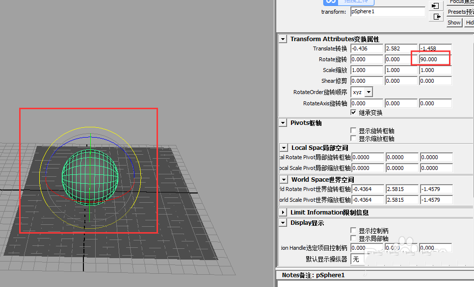 2、選中球體,按下r鍵進行旋轉(zhuǎn),在右方輸入90度即可,看下旋轉(zhuǎn)后效果