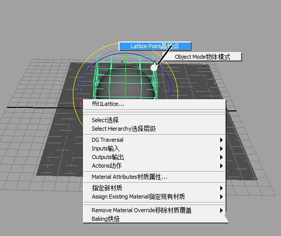 4、晶格出現(xiàn),開始調(diào)晶格點,右擊,調(diào)點,前端拉長,中間縮小下,雞蛋形狀就出來了哦