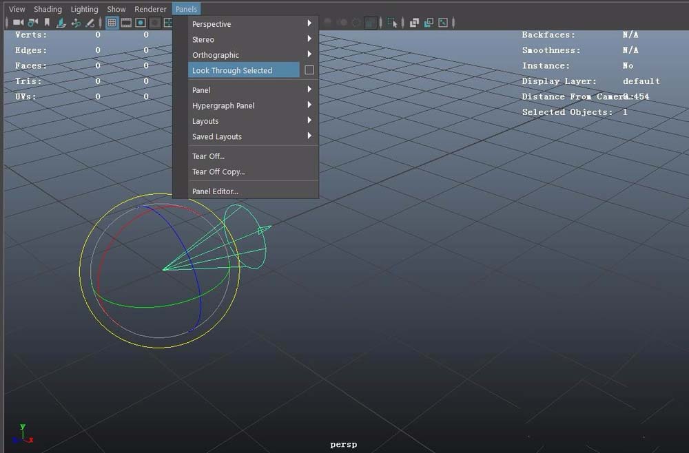 3、進入燈光視角進行調節,選中燈光,點擊panels---->look through selected