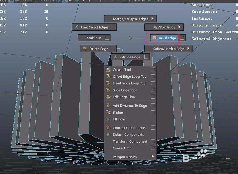 7、對夾縫中的線執(zhí)行倒角,按著shift鍵不松,然后右鍵選擇bevel edge