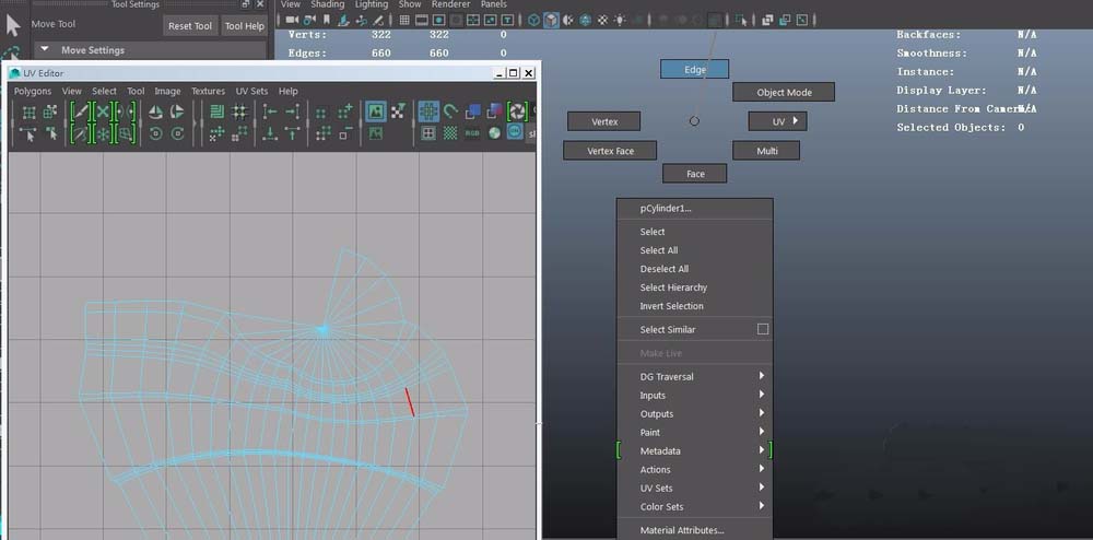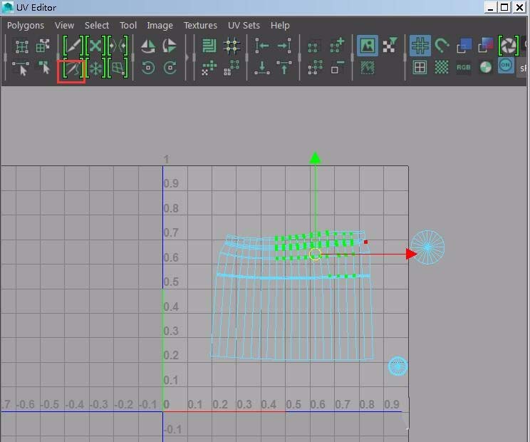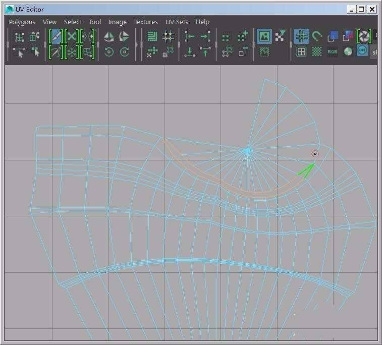 7、遇到不好展開的uv,需要使用切刀繼續(xù)切割,左鍵在需要切開的線邊緣滑動(dòng)